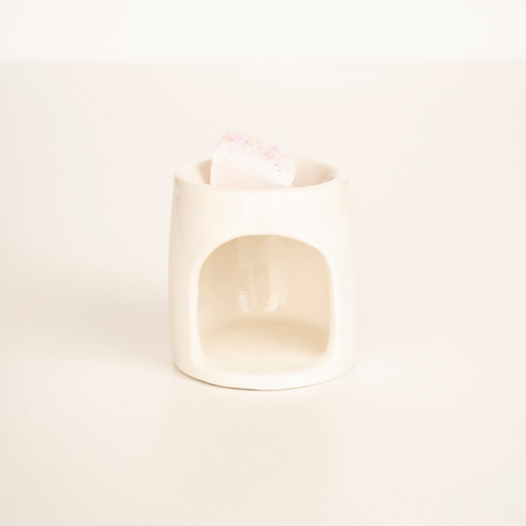 Τοποθετήστε ένα ή δύο κυβάκια wax melt ( ή αρωματικό έλαιο με λίγο νεράκι) στο πιατάκι του κεραμικού αρωματιστή, ανάψτε ένα κερί ρεσό (κατά προτίμηση όχι αρωματικό) και απολαύστε όπως απελευθερώνεται το άρωμα.