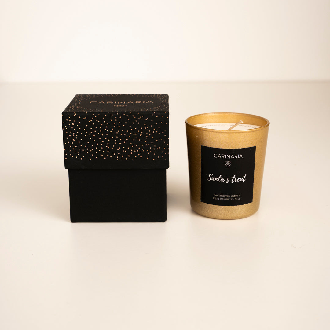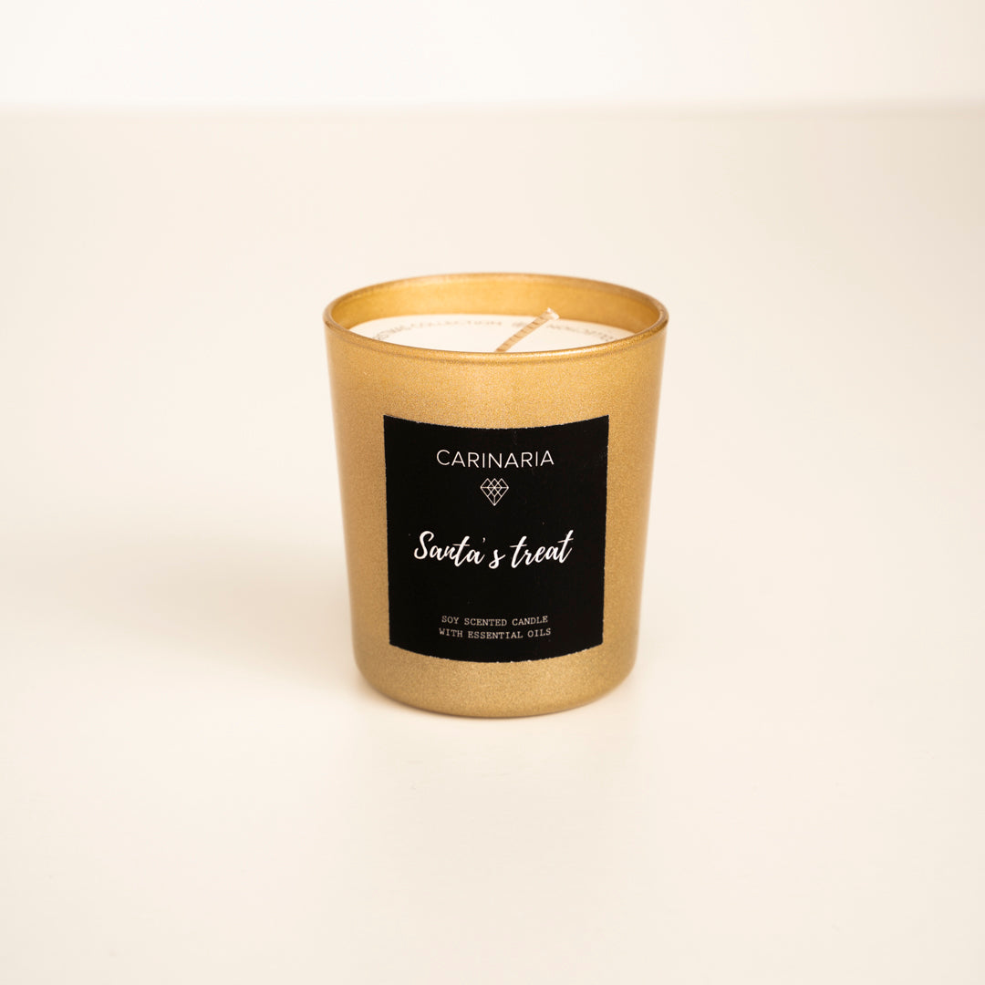 Η αρωματική σύνθεσή του συνδυάζει γλυκές νότες μελιού, προσφέροντας ένα ζουμερό και απολαυστικό άρωμα. Τα αρωματικά μπισκότα γεμίζουν το χώρο με έναν αέρα ζεστασιάς και νοσταλγίας, καθιστώντας το "Santa's Treat" το τέλειο κερί για να απολαύσετε τις γιορτινές στιγμές με γλυκές αναμνήσεις.